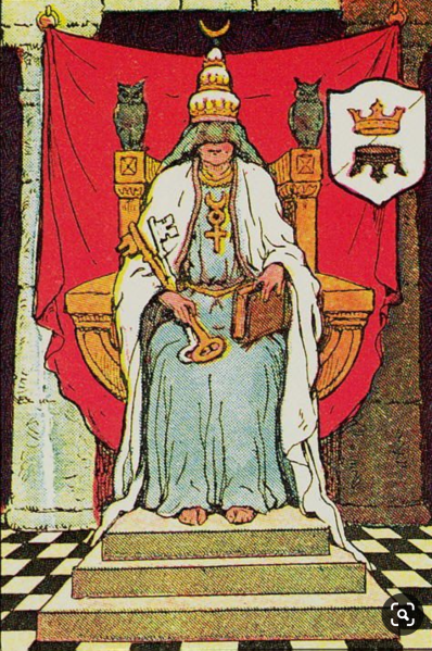 In Egypt Wisdom was personified by Isis, a manifold goddess of whom it was inscribed: ‘I am that which is, has been, and shall be, and no man has lifted my veil.’ Similarly of “Wisdom” the Hebrews wrote: ‘The first man knew her not perfectly, no more shall the last find her out. For her thoughts are more than the sea and her counsels profounder than the Great Deep.’ It is noteworthy that the writer of The Song of Solomon is himself perplexed at the complex character of his own heroin. …he leaves unanswered his own query, ‘Who is she that looketh forth as the morning, fair as the moon, clear as the sun, and terrible as an army with banners?’