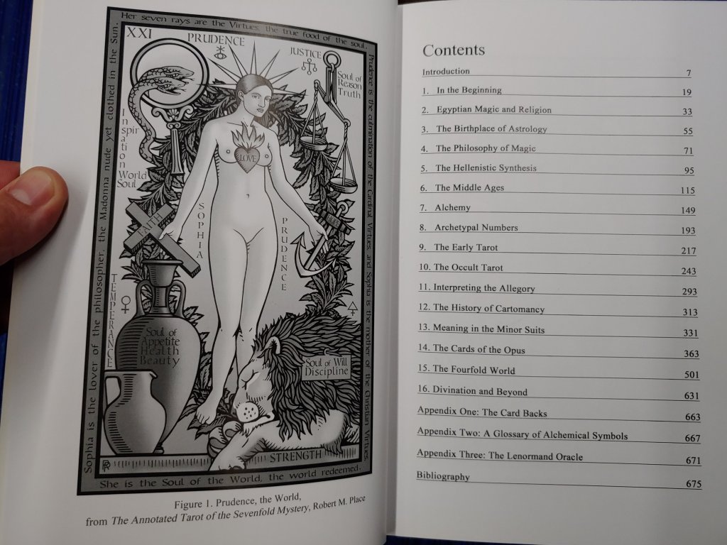 An almost 700 page book with roughly 300 illustrations, a scholarly work. I got this book and his 5th edition tarot deck to help reinforce alchemical concepts and symbolism. I’m currently going through and meditating on my Knapp-Hall deck so it’ll be a while before I get to a study of Robert’s alchemy deck. The information in this book I’m sure will enhance my intuition and deepen understanding in reading the Knapp-Hall deck.